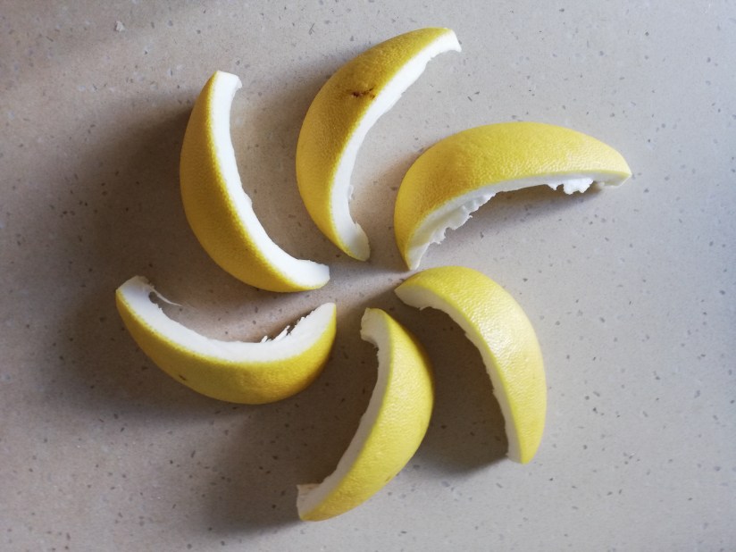 את הקליפות נחתוך לרצועות בעובי סנטימטר, נמלא קערה במים ונשרה לשלושה ימים, מעל נניח צלחת כדי שהקליפות לא יצופו מעל המים. כל יום מחליפים מים (אפשר גם פעמיים, תמיד אפשר להשקות עם המים האלו עציצים). במהלך הזמן הזה אפשר תמיד להוסיף לקערה עוד קליפות הדרים, זה גם יצור רמות מרירות שונות.