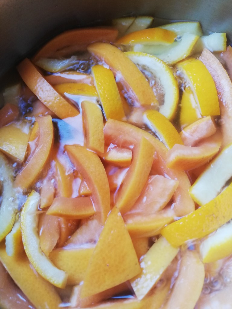 שלב שני: בישול הקליפות (שימו לב, זהו שלב לפני הבישול בסירופ).
